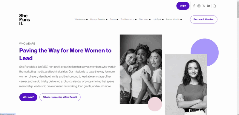 - Partners: Organizations that align with She Runs It’s mission and seek collaboration opportunities.
